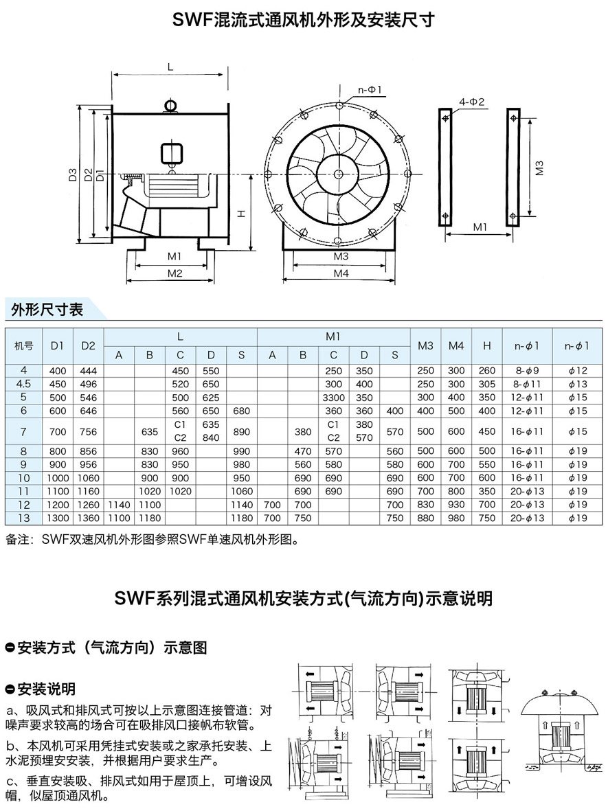SWF系列流通式通風機,具有同機號風置較離心風機大,風壓較軸流風機高,可以軸向安裝;