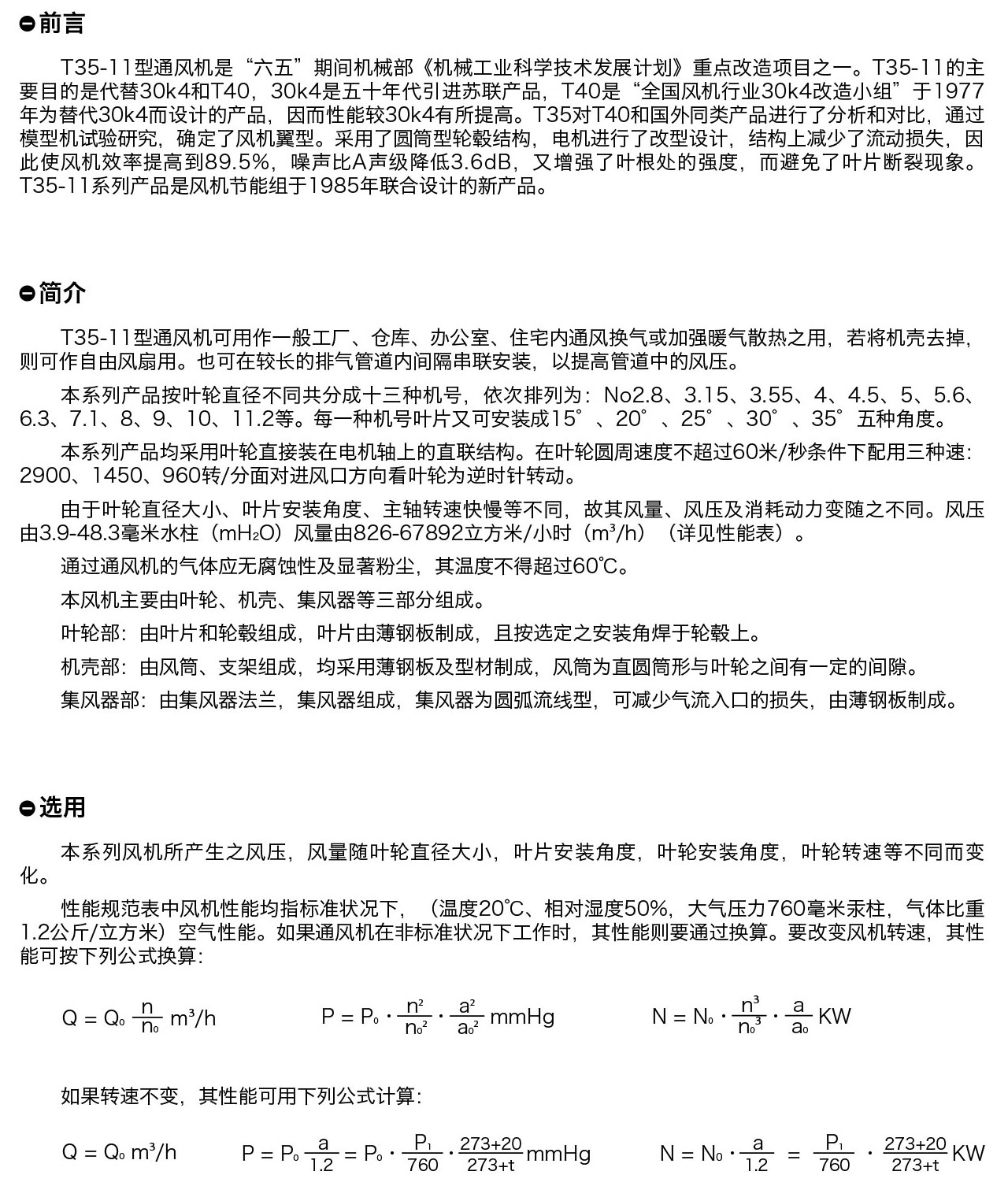 T35-11型通風機可用作一般工廠、倉庫、辦公室、住宅內通風換氣或加強暖氣散熱之用,若將機殼去掉, 則可作自由風扇用。也可在較長的排氣管道內間隔串聯(lián)安裝,以提高管道中的風壓